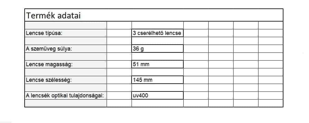 A hozzátartozó mindehárom lencse UV 400 -as védelemmel van ellátva, hogy megvédje szemeidet a káros UV sugárzás ellen.