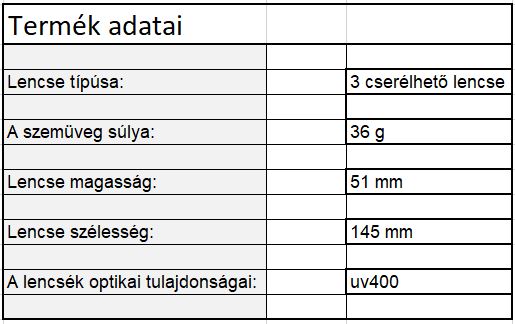 A szemüveg súlya mindössze: 36 g. Amely nagyon kényelmes viseletet tesz lehetővé akár hosszú távon is.