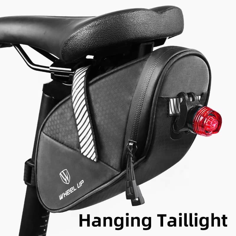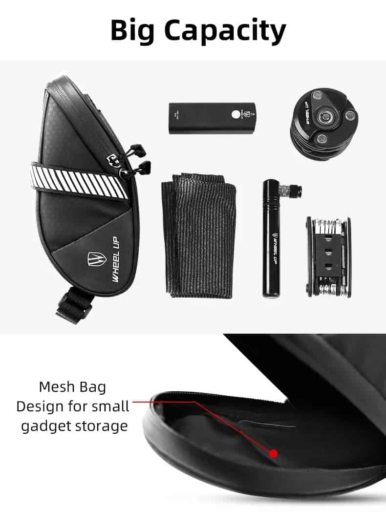 egy nyereg alá tervezett táska, amelyben szépen elfér egy gumitömlő és a defektjavító készlet.